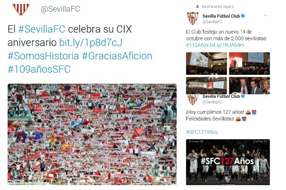 ¿Cómo es posible que un equipo como el Sevilla se salte 17 años de historia en sólo dos? Eso es lo que pensarán muchos aficionados al fútbol que vieron como ayer el conjunto sevillista celebraba sus 127 años de historia cuando en 2005 estaban celebrando los 100.
