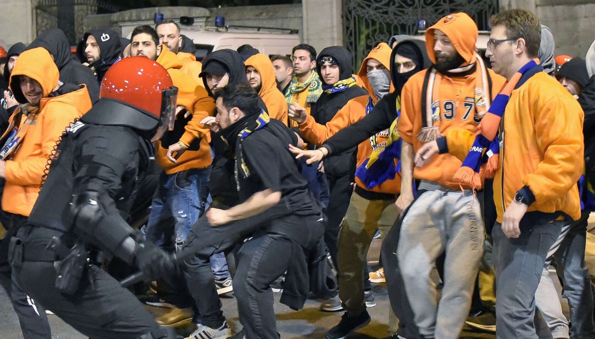 Tras la llegada sin incidentes al estadio de los autobuses de los dos equipos, los problemas se han producido cuando alrededor de dos centenares de seguidores chipriotas, escoltados por un fuerte dispositivo de la Ertzaintza, llegaban a las inmediaciones del San Mamés.