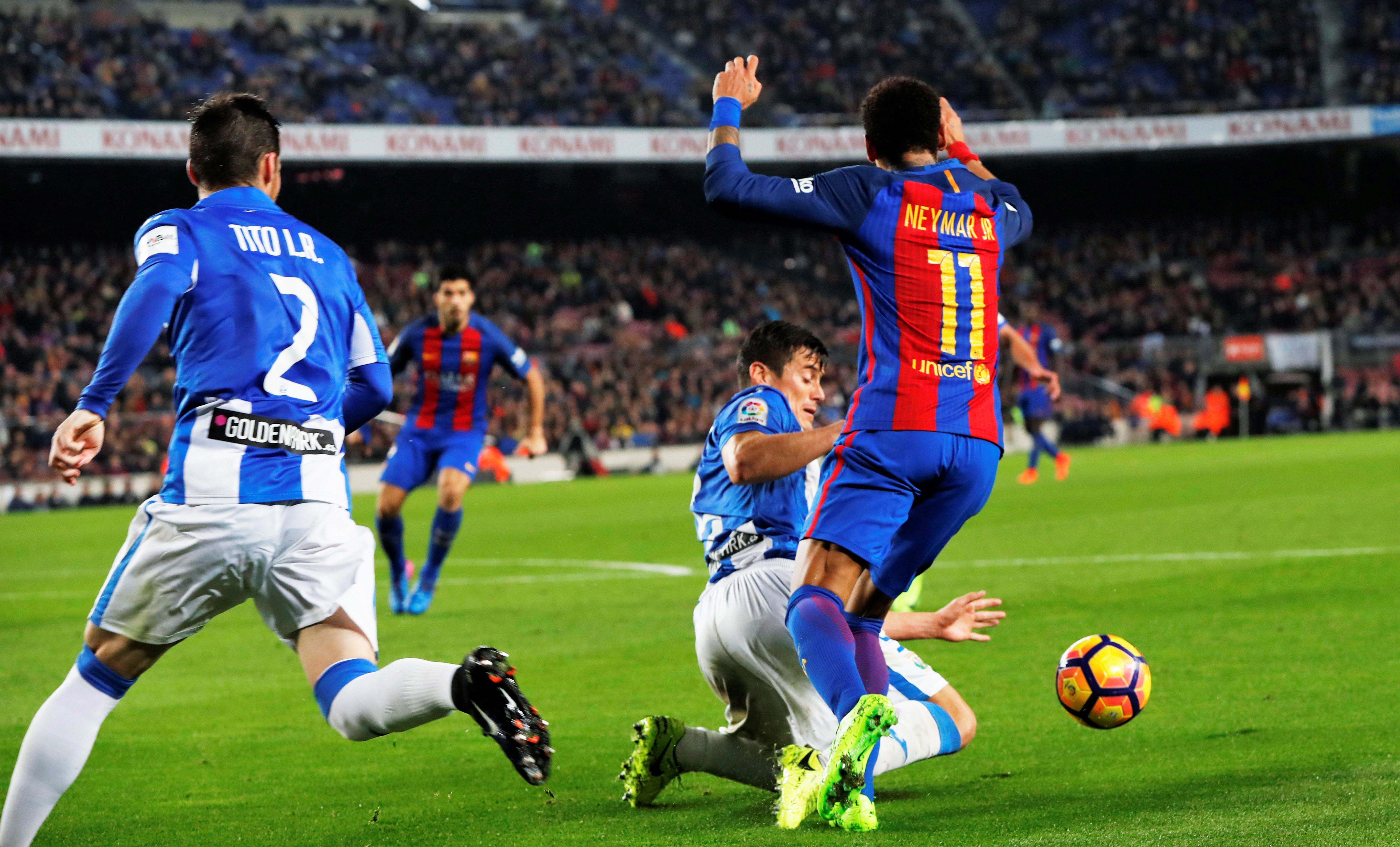 El Barcelona venció al Leganés por dos goles a uno, dejando una mala imagen y con cierta polémica ya que la victoria no llegó hasta el último minuto y por un penalti, de Martín Mantovani a Neymar, muy discutido por parte del equipo madrileño.