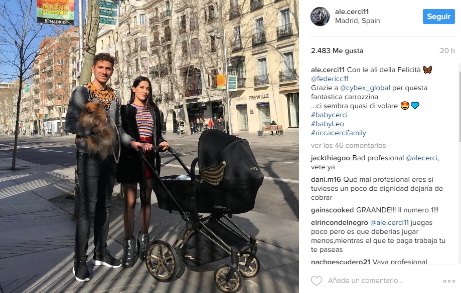 En la imagen que Alessio subió a su cuenta de Instagram se puede ver al ex de Torino y Milan junto a su mujer y su hijo por una conocida calle de Madrid. El pie de la foto reza:"Con alas de felicidad".