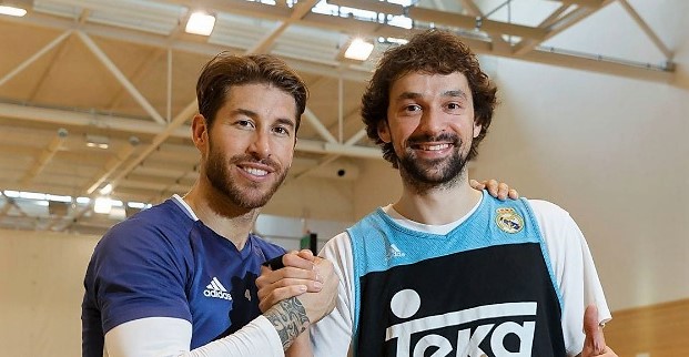 Lo hicieron junto a miembros de la primera plantilla de la sección de baloncesto, que también contó con la presencia del entrenador Pablo Laso. Ambos equipos se mezclaron para hacer un entrenamiento diferente después de un fin de semana exitoso tras la victoria ante el Betis por 2-1, con un gol salvador de Sergio Ramos, de cabeza en el minuto 81, y con el triunfo sobre el Barcelona con una canasta sobre la bocina de Sergio Llull (76-75).