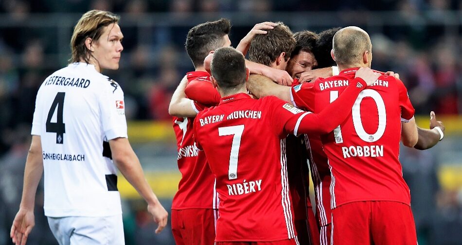 Un solitario gol de Thomas Müller, tras un gran pase de Thiago Alcántara, le dio al Bayern de Múnich una apretada victoria a domicilio sobre el Borussia Mönchengladbach (0-1) con lo que los bávaros aumentan a 13 puntos su ventaja sobre el segundo clasificado de la Bundesliga, que es el RB Leipzig.