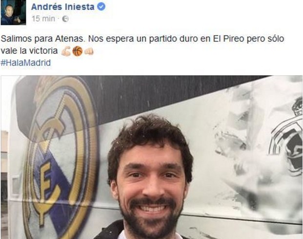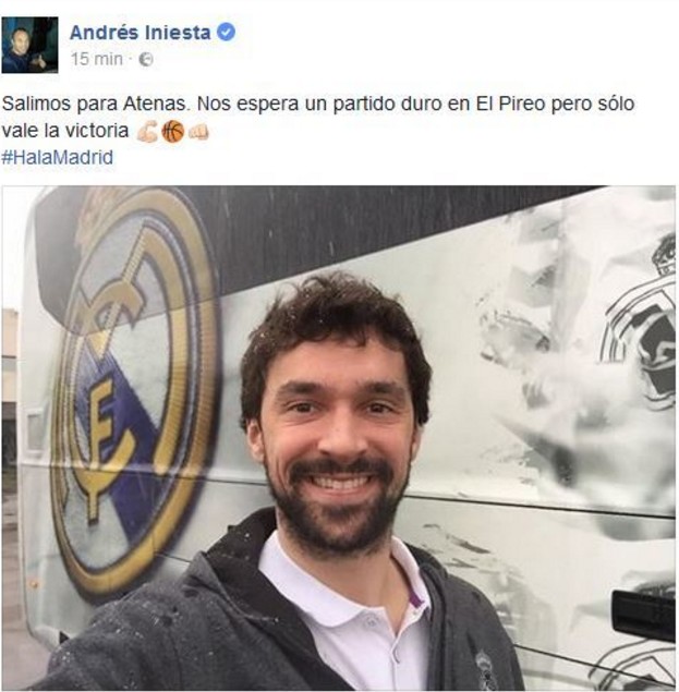 La cuenta de Facebook del jugador del Barcelona publicó una fotografía por error en la que se veía a Llull, jugador del Real Madrid de baloncesto, anunciando que el equipo blanco ponía rumbo a Atenas para jugar un nuevo partido de Euroliga.