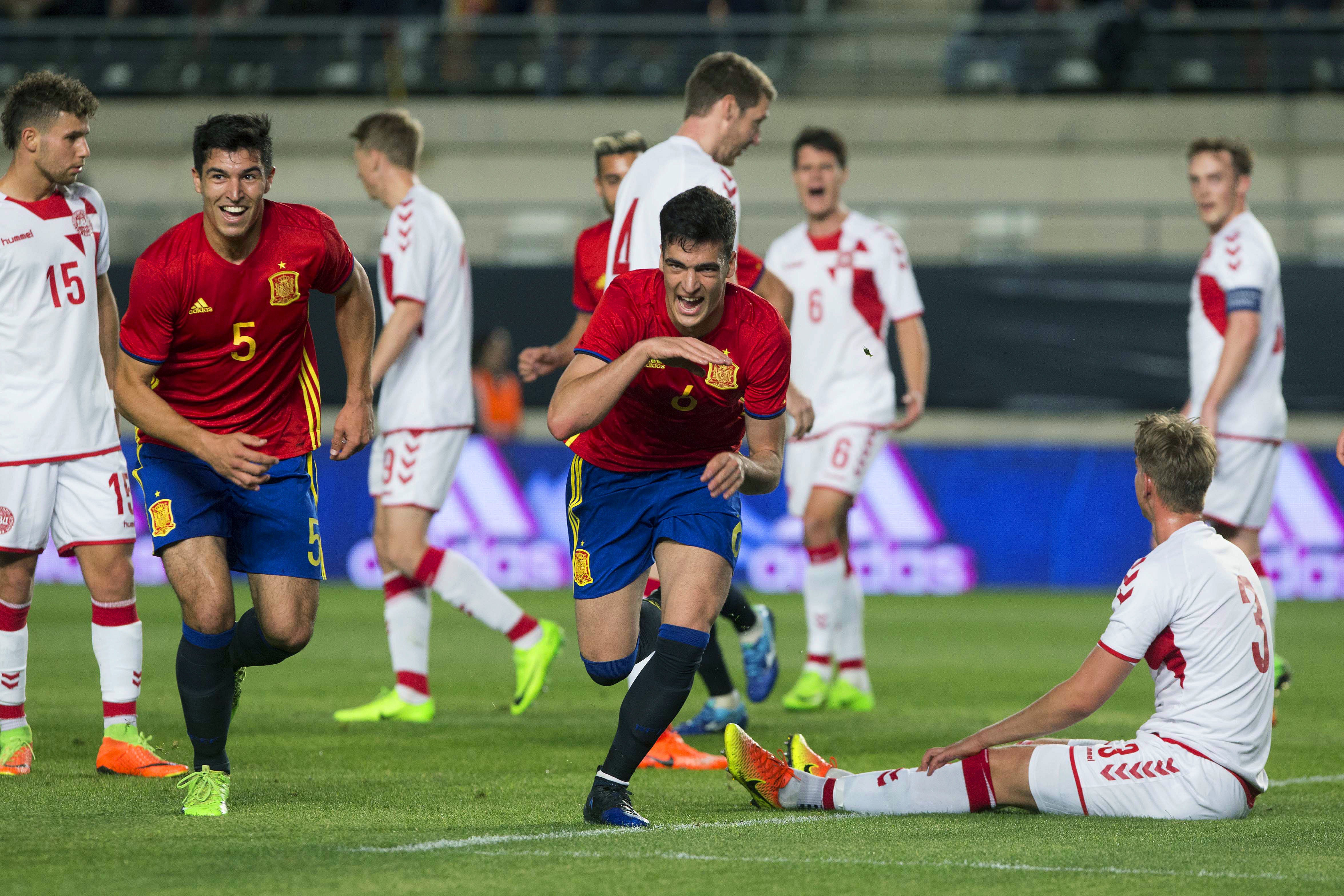 Goles: 0-1. Minuto 12: Hjulsager. 1-1. Minuto 22: Mikel Merino. 2-1. Minuto 70: Saúl Ñíguez. 3-1. Minuto 82: Denis Suárez.