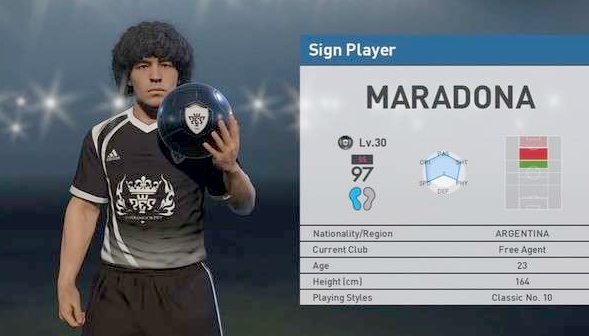 Konami explicó hace unos días que fue el Barcelona quien le cedió los derechos del Pelusa, junto con los de otros exjugadores azulgranas como Juan Román Riquelme, Rivaldo, Ronaldo Nazario, Ronaldinho, Gary Lineker y Edgar Davids —dentro de la lista leyendas culés PES 2017—.