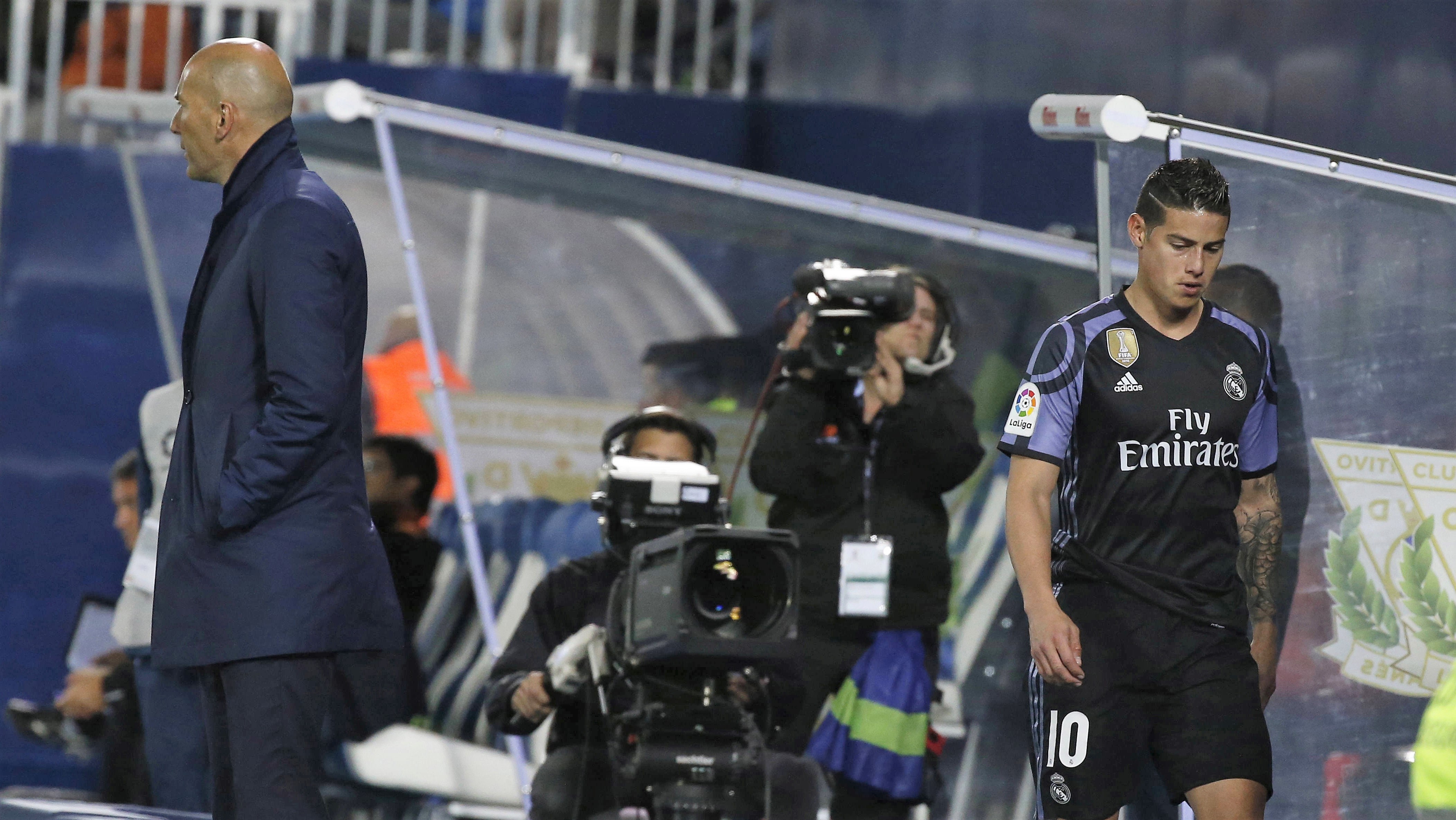 En enero de 2016, Zidane tuvo que llamar la atención de James en un Real Madrid – Sporting de Gijón. El colombiano no saltó a calentar junto a los suplentes y sólo lo hizo cuando Zidane se lo ordenó. Bale se lesionó en ese partido y en su lugar salió Jesé. James, por su cuenta, decidió que se terminaba el calentamiento en la banda. Cuando el técnico se dio cuenta, puso cara de sorpresa. "¡A calentar!", le ordenó.