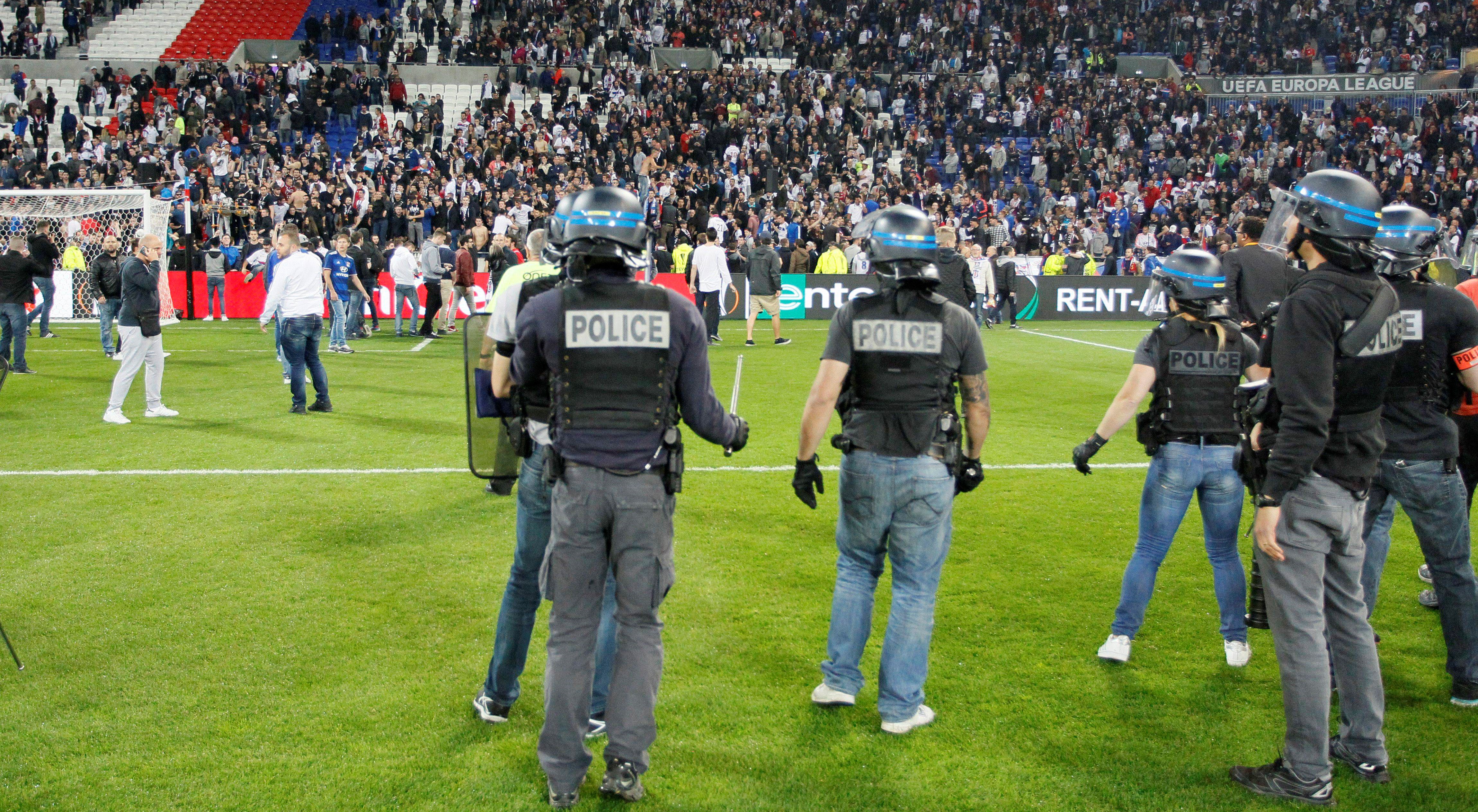 La UEFA acusa al club francés de permitir la presencia de bengalas en el recinto y de autorizar la estancia de aficionados en las escaleras de las gradas que bloquearon las salidas. El organismo europeo imputó al Lyon una "organización insuficiente", especialmente evidente en la separación de ambas hinchadas. Además, la UEFA achaca a la entidad anfitriona deficiencias en la seguridad y se refiere a la invasión en el campo de los aficionados después del segundo gol del Lyon.