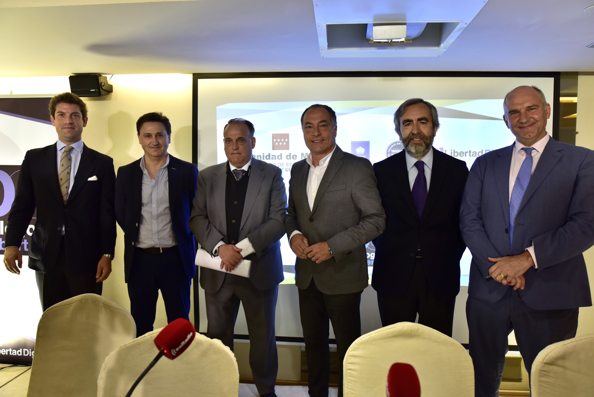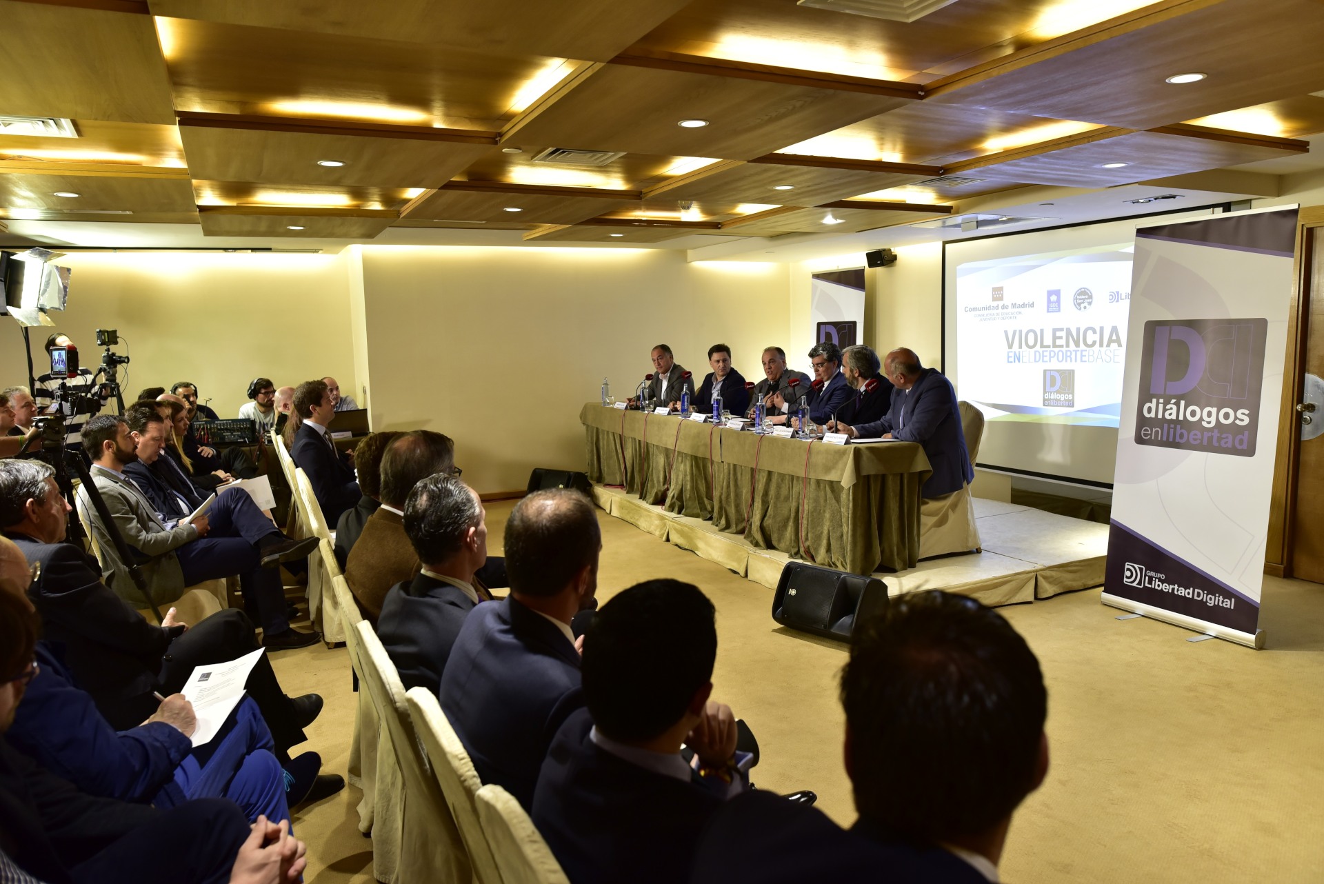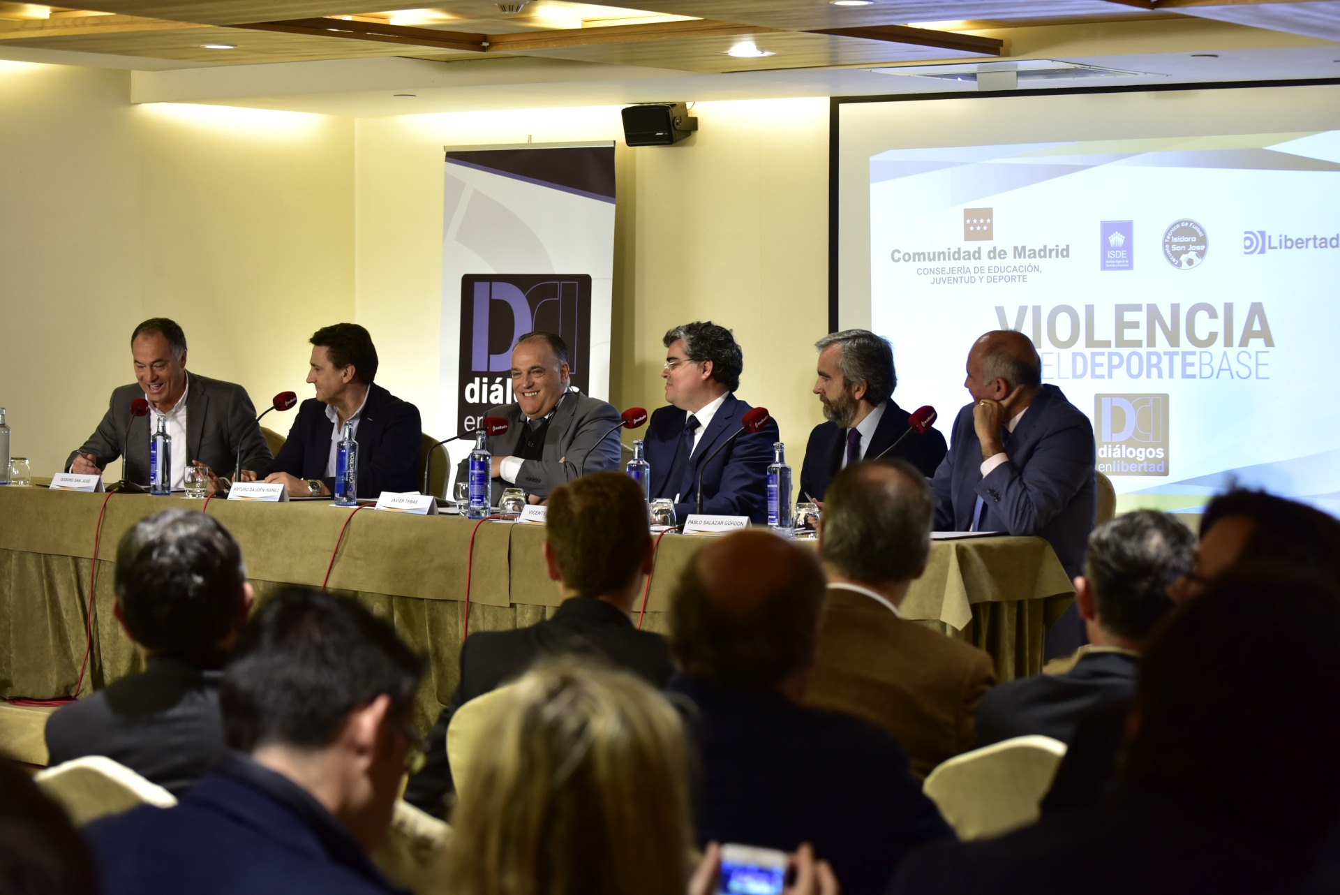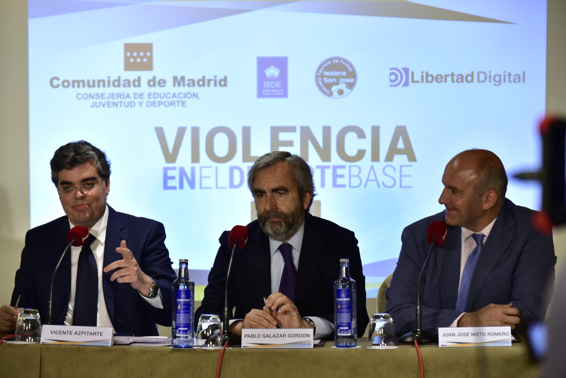 Jornadas en Libertad Digital sobre la violencia en el deporte base con la presencia de Pablo Salazar, director general de Deportes de la Comunidad de Madrid; Juan José Nieto, director general de Enseñanza infantil, primaria y secundaria; Javier Tebas, presidente de la Liga de Fútbol Profesional; Isidoro San José, exjugador del Real Madrid y colaborador de esRadio; y Arturo Daudén Ibáñez, exárbitro internacional.