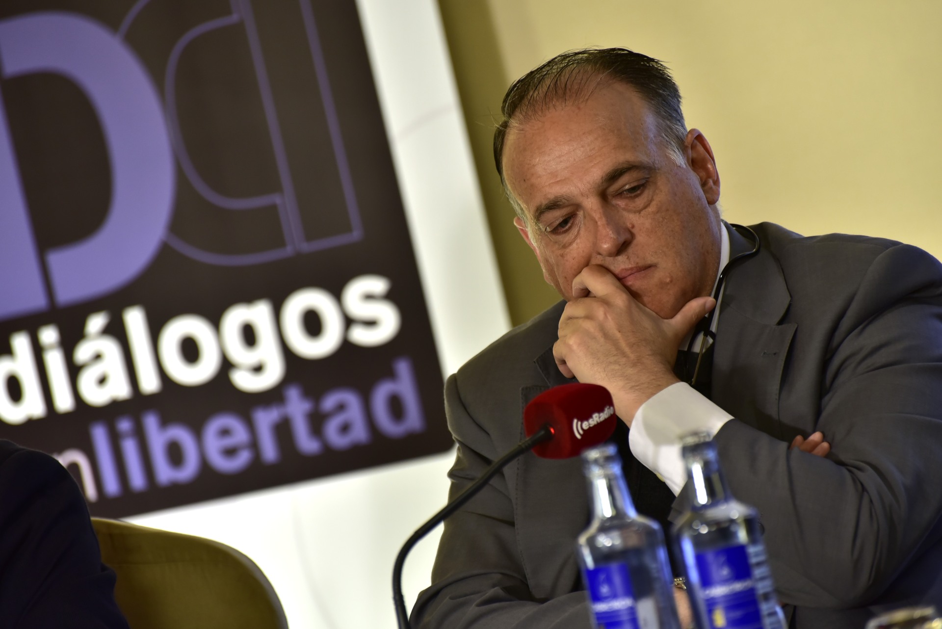 Otro momento del evento de Diálogos en Libertad contra la violencia en el deporte Base. Javier Tebas, muy participativo durante todo el debate, insistía en el ejemplo que las instituciones del fútbol tienen que dar para las nuevas generaciones.