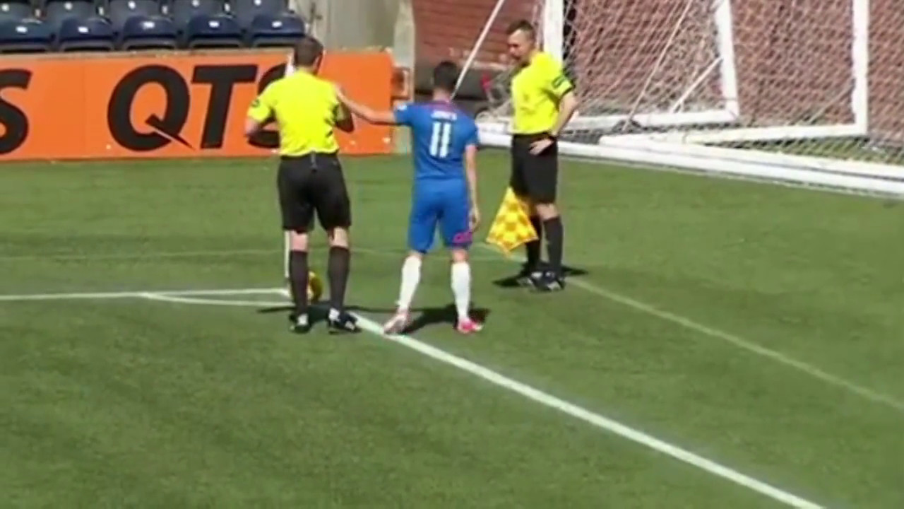 El árbitro, tirando de sentido del humor, se acercó a su asistente y le mostró.. ¡tarjeta roja! Arte para dar y tomar del trencilla escocés.