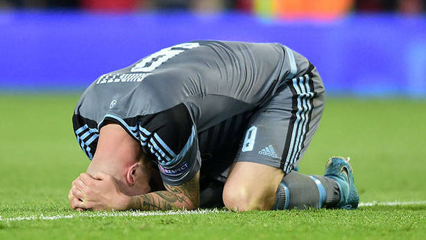 El sueco falló a puerta vacía. De marcar, el Celta estaba en la final. Cruel desenlace para un equipo que jamás dejó de soñar y que rozó la proeza en Old Trafford.