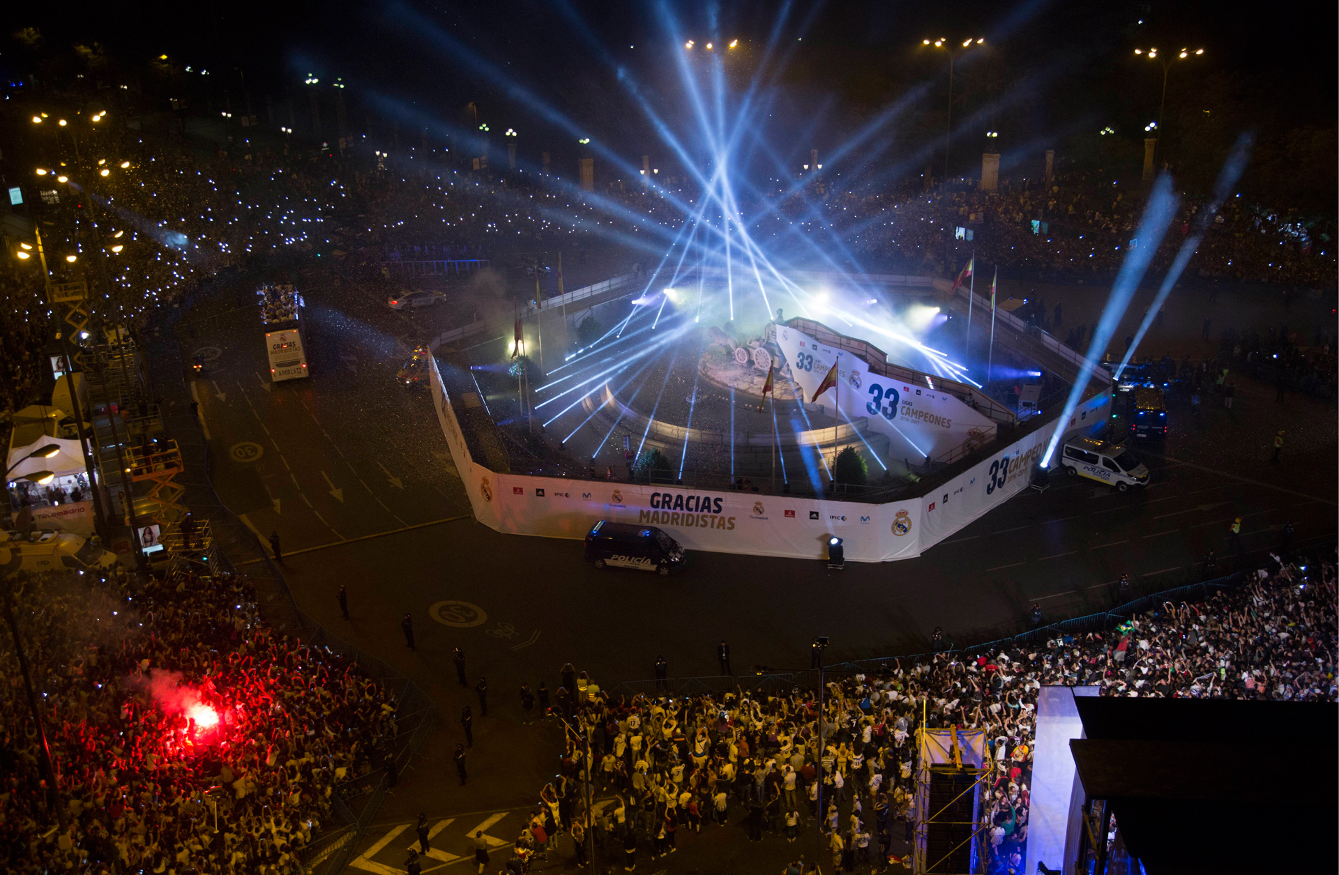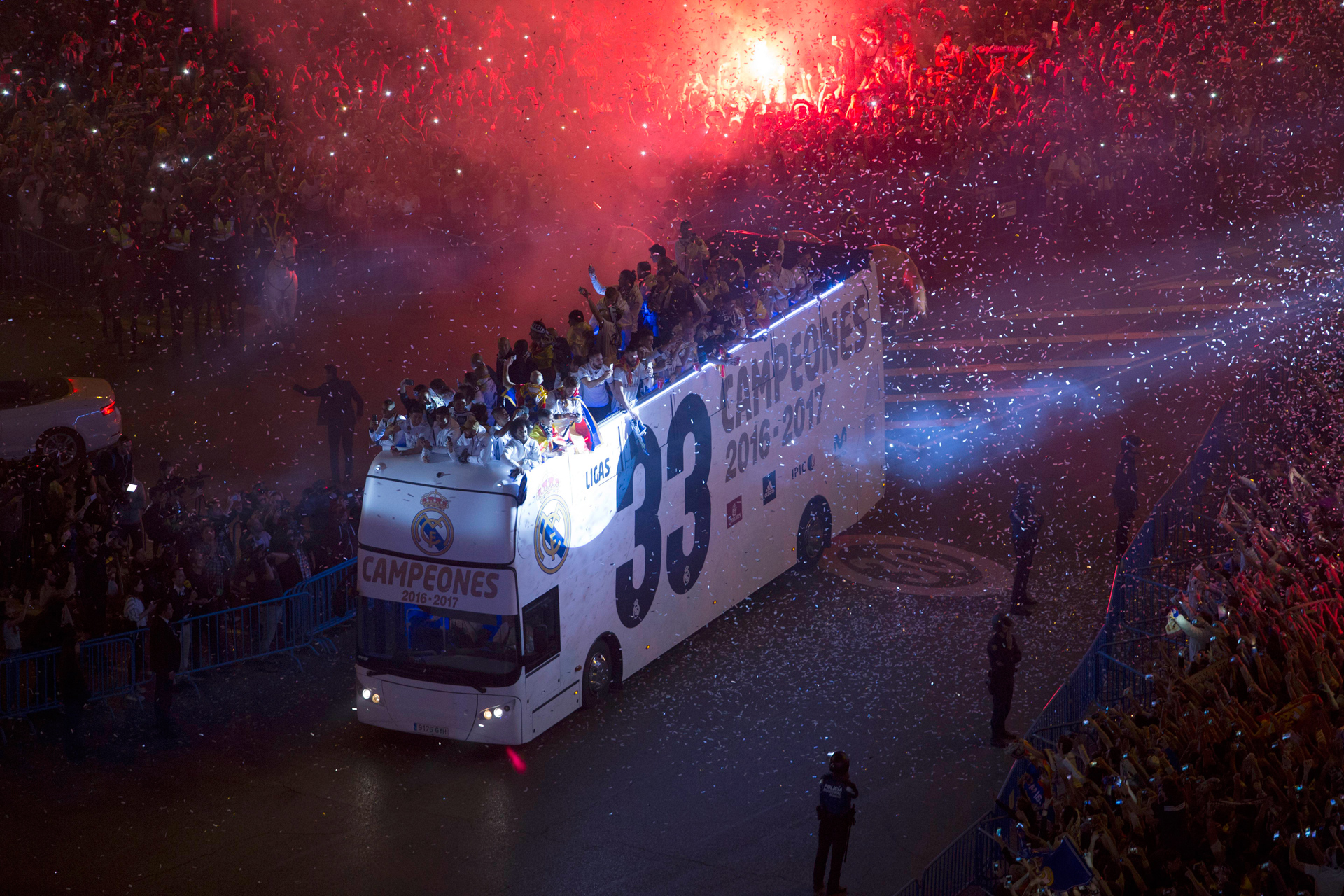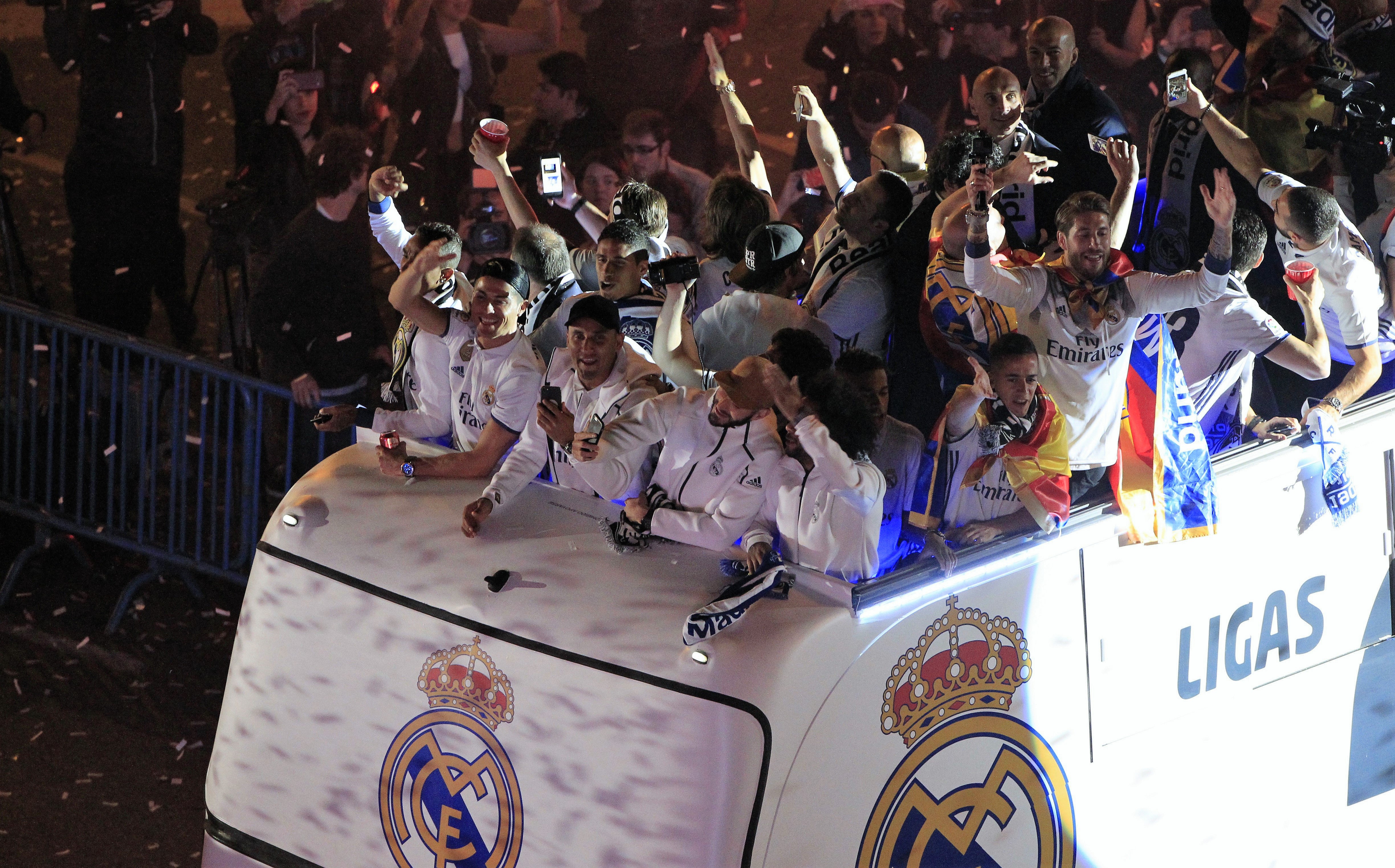 El Real Madrid celebró en Cibeles, ante miles de aficionados del club blanco, su 33er título de Liga que ganó ante el Málaga en La Rosaleda.