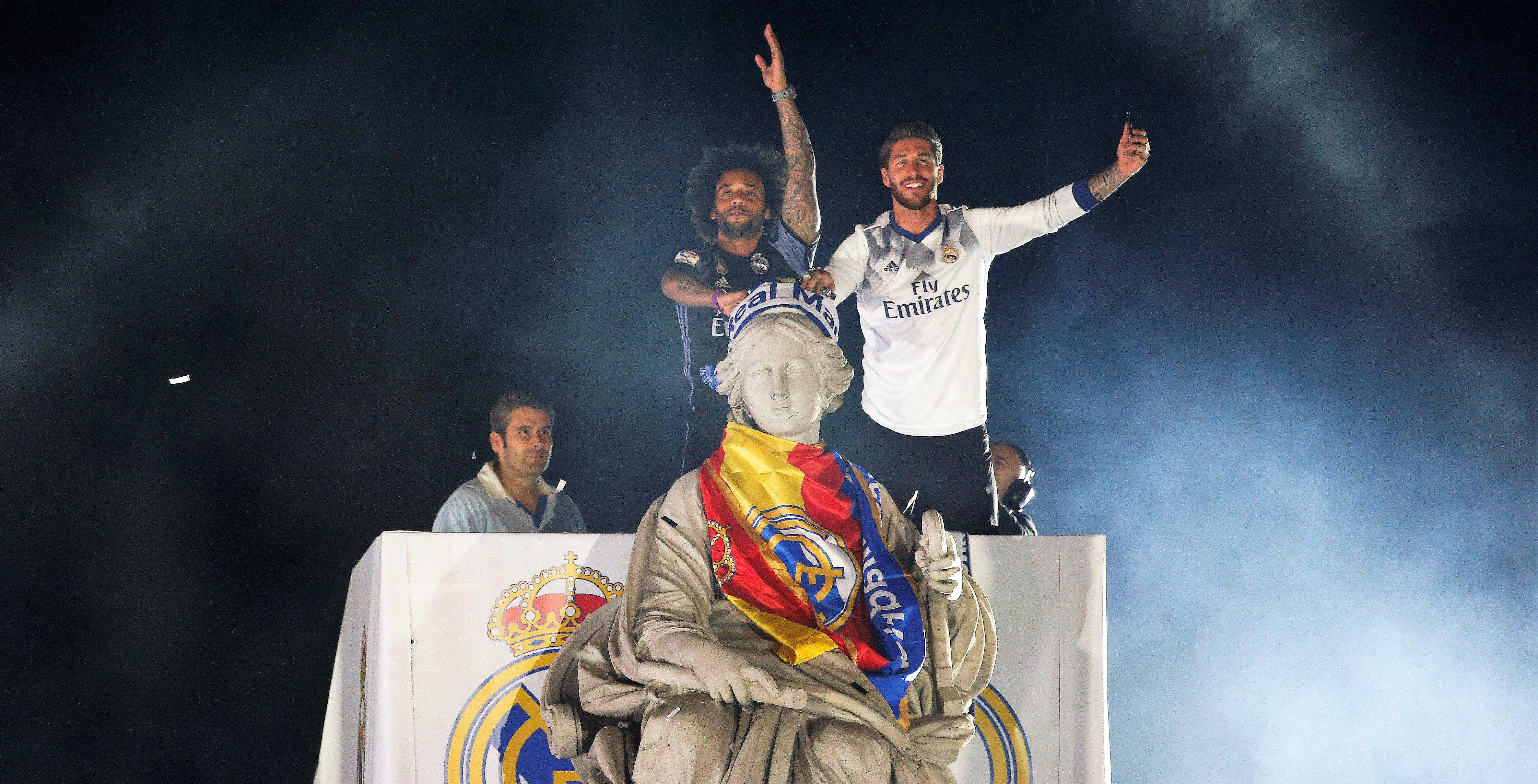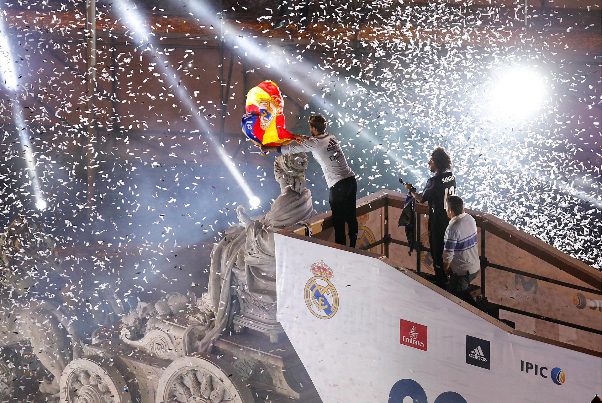 El capitán del Real Madrid fue el encargado de colocar la bandera de España y del equipo blanco en el cuello de la Diosa.