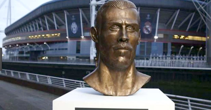 La escultura del futbolista galés fue ordenada por la casa de apuestas Paddypower y ya aparece expuesta en las afueras del Millenium Stadium de Cardiff, donde este sábado el Real Madrid y la Juventus de Turín se enfrentarán en la final de la Champions.