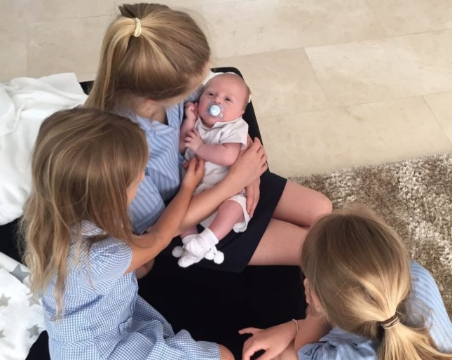 Gerrard subió una instantánea en la que se puede ver a su hijo recién nacido, Lio, único varón que ha tenido con su mujer Alex Curran, junto con sus tres hijas, acompañando la fotografía con un mensaje que no tiene desperdicio: "Parece que cuando sea mayor su plancha y su limpieza están aseguradas".