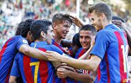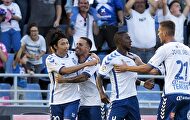 Los jugadores del Tenerife celebran el gol de Shibasaki. | EFE El Tenerife sufre pero jugará la final por el ascenso (1-0)