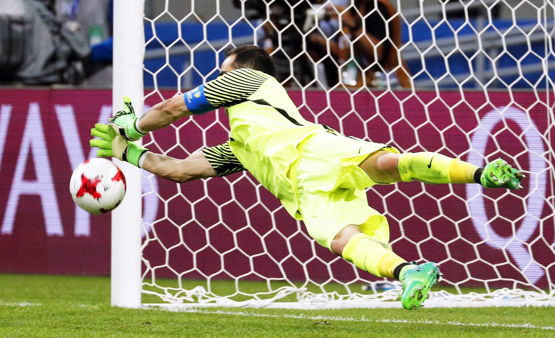 Chile se clasificó hoy para la final de la Copa Confederaciones al derrotar a Portugal en la ruleta rusa de los penaltis (3-0) con Claudio Bravo como héroe que paró los tres penaltis lanzados por los futbolistas portugueses.