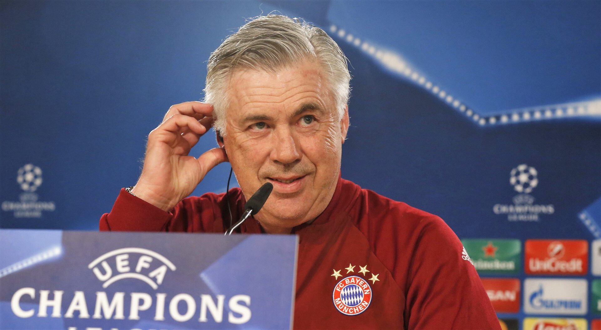 Ancelotti, su gran valedor, sonríe y levanta su ceja.