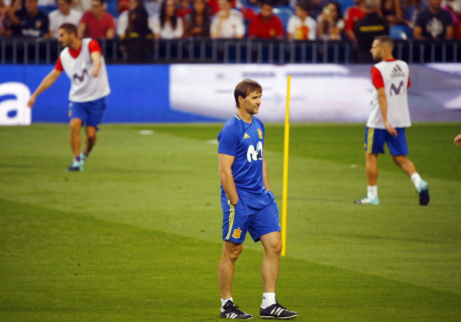 Lopetegui organizó un entrenamiento en el que los futbolistas españoles recibieron una charla de su entrenador y posteriormente completaron unos rondos marcados por el buen humor y las sonrisas de todos los jugadores. Con un trabajo de recuperación para los titulares ante Italia y de mayor intensidad para suplentes y no convocados.