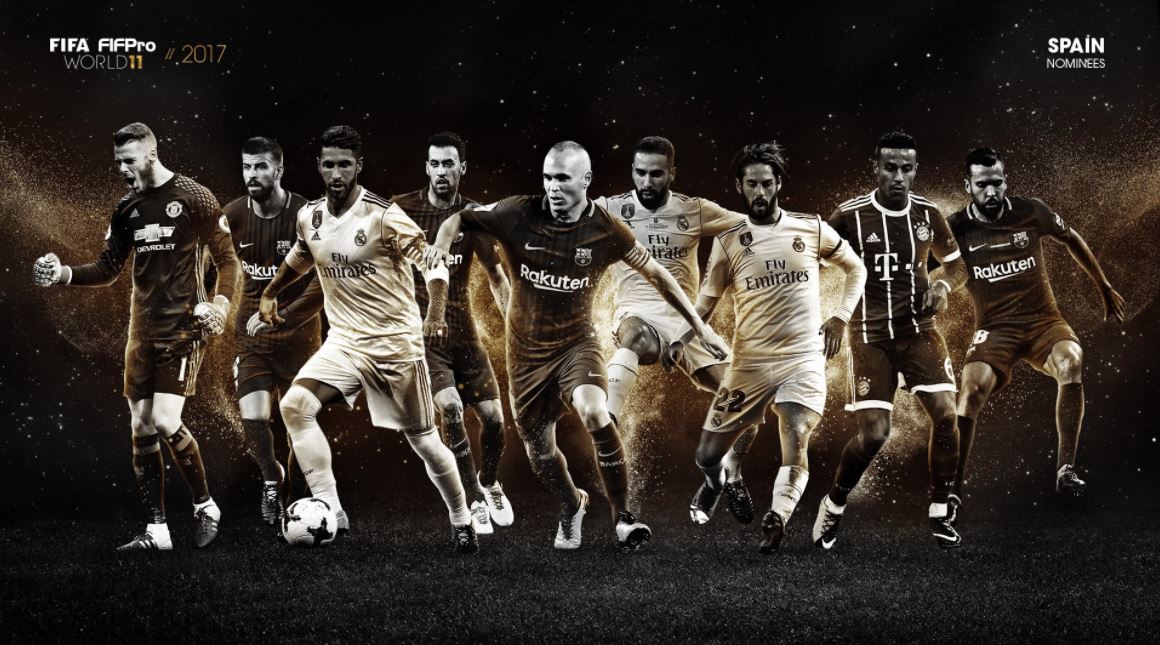 El sindicato mundial de futbolistas, FIFPro, y la FIFA han anunciado los 55 candidatos al once del año, entre los que hay nueve españoles.