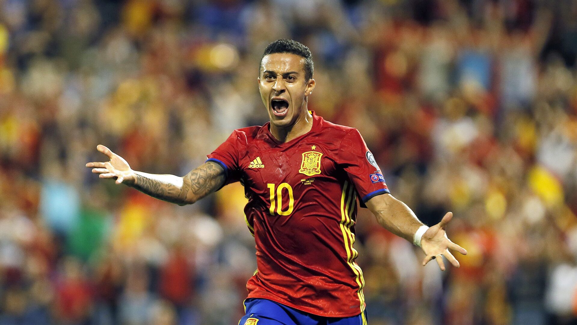Thiago Alcántara ha causado baja en la selección española, que este sábado ha viajado a Israel, al sufrir un esguince en el ligamento interno del tobillo, durante el partido disputado anoche contra Albania en el José Rico Pérez de Alicante (3-0), donde el jugador del Bayern marcó un gol.