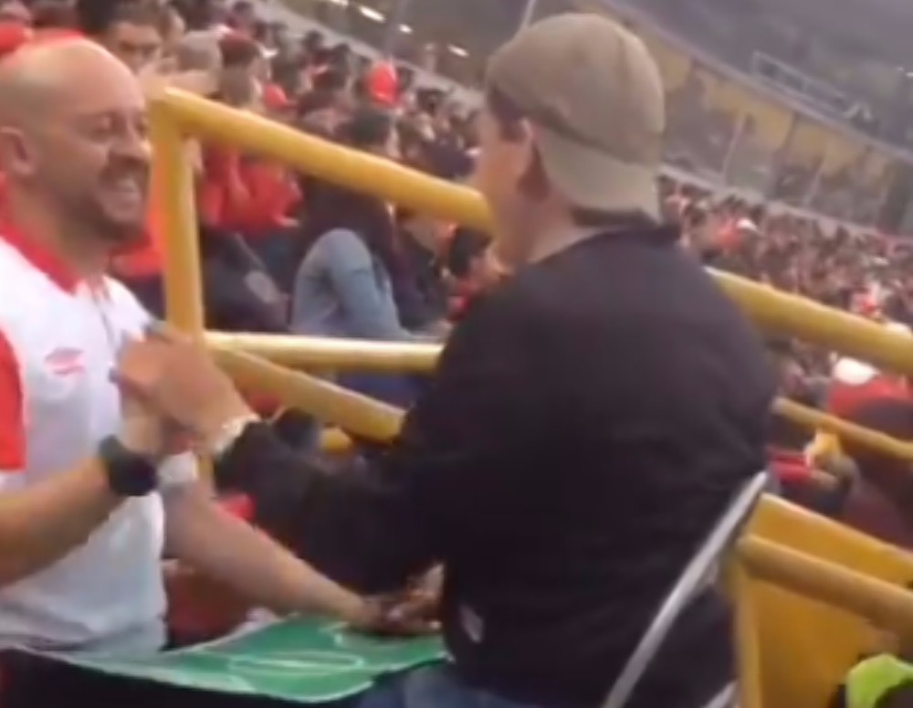 Se disputaba el clásico de Bogotá entre Independiente de Santa Fe y Millonarios. Un seguidor de Santa Fe, César Daza, le explica a su amigo José Richard, hincha de Millonarios y que tiene una limitación visual-auditiva, como se desarrolla el partido. Para ello, simula que un tablero es el campo de fútbol.