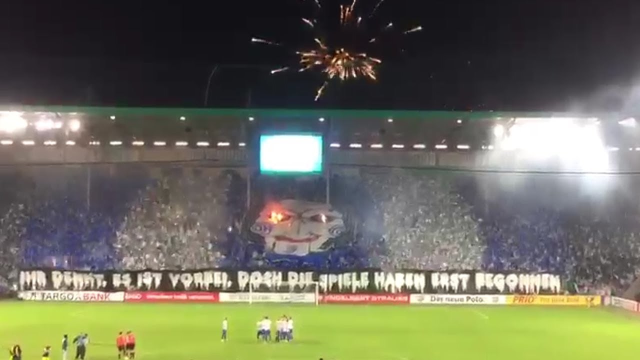 La afición de Magdeburgo de Tercera División realizó un espectáculo con tifo incluido para impresionar al equipo visitante.
