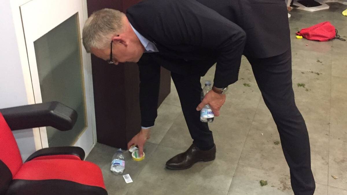 Las cámaras captaron un momento insólito en el mundo del fútbol de élite: Janne Andersson recogió la basura que sus jugadores habían generado.