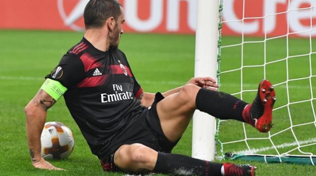 Nadie se explica cómo a Bonucci, central del Milan, se le escapó el balón entre las piernas en el tanto del Austria de Viena.