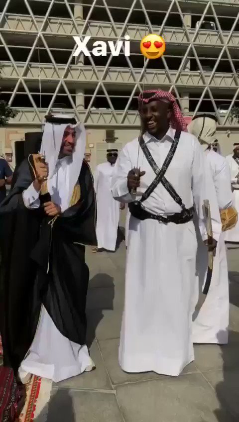 Xavi Hernández aprende a usar el sable vestido de jeque