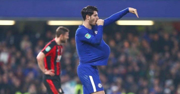 Morata marcó el gol de la victoria ante el Bournemouth en el minuto 91 y se llevó el dedo pulgar a la boca simbolizando un chupete, al mismo tiempo que se metió el balón debajo de la camiseta.