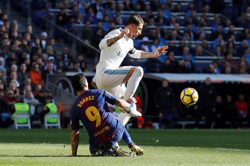 Contundente e irónico. Así se mostró Sergio Ramos en zona mixta después del 0-3 del Barcelona en el Santiago Bernabéu ante el Real Madrid. Al capitán blanco le preguntaron por una jugada con Luis Suárez en la que, dicen desde la Ciudad Condal, sacó el brazo a relucir para agredir al uruguayo.