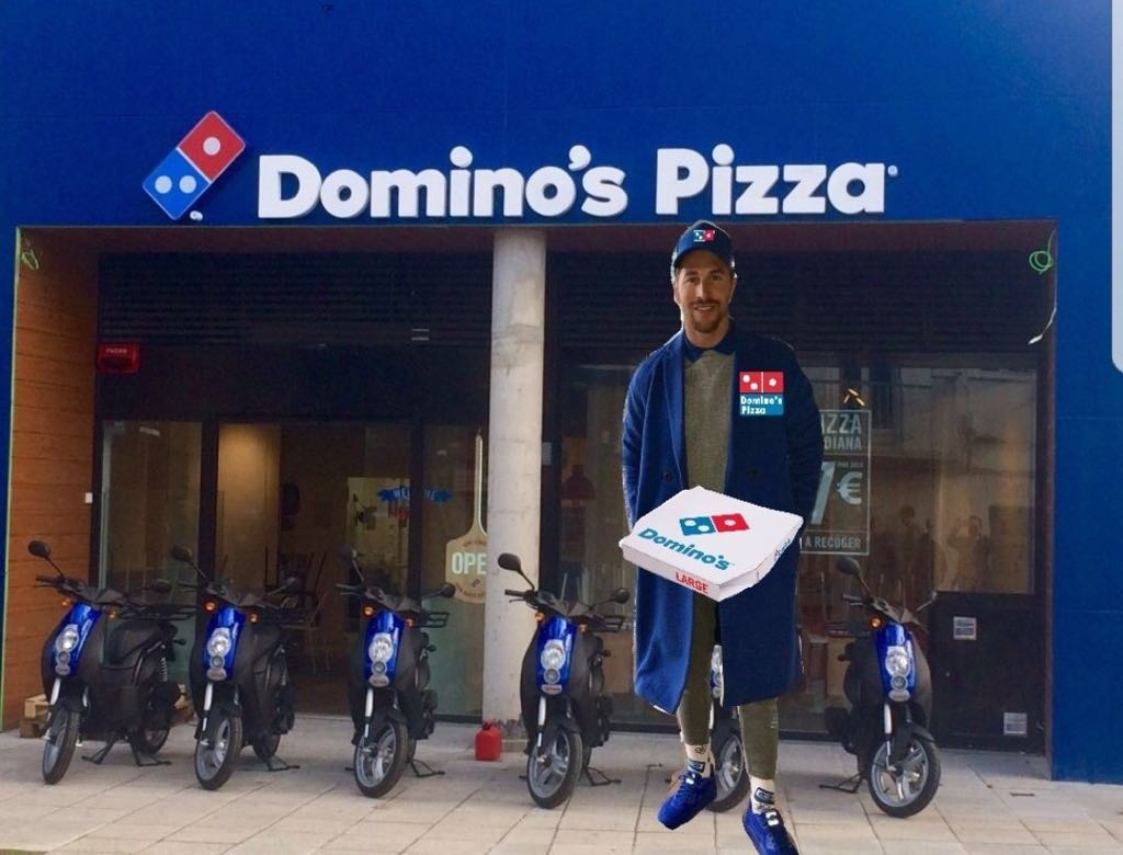 Sergio Ramos, retratado como si fuera un repartidor de Domino's Pizza.