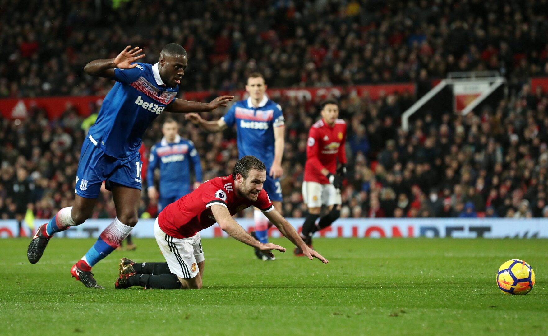 El partido que Manchester United y Stoke City disputaron este lunes en Old Trafford (3-0), correspondiente a la vigésimo tercera jornada de la Premier League, dejó una imagen muy curiosa, con el centrocampista español Juan Mata como protagonista.
