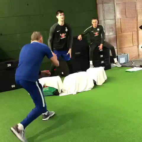 El exportero del Atlético de Madrid y actual cancerbero del Chelsea suma a su entrenamiento sobre el césped este curioso ejercicio para mejorar su capacidad de reacción.