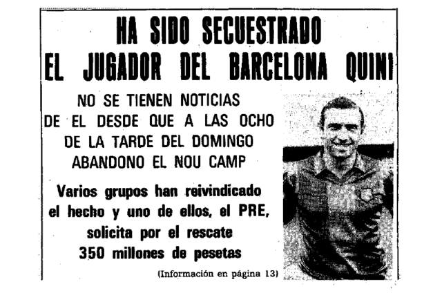 El máximo goleador del fútbol español, secuestrado. Uno de los jugadores de mayor calado a nivel futbolístico y social, desaparecido. Así amaneció España el 2 de marzo de 1981, unas horas después de que Enrique Castro Quini hubiese sido retenido y secuestrado a punta de pistola por dos individuos cuando el jugador del Barcelona se disponía a recoger a su mujer al aeropuerto de la Ciudad Condal.