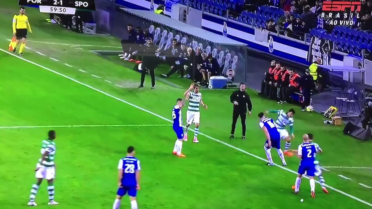 Pasó en la victoria del Oporto sobre el Sporting. Coentrao quiso coger un balón empujando a un sanitario y recibió el empujón de otro. El árbitro consultó el VAR y sólo expulsó a los dos sanitarios.