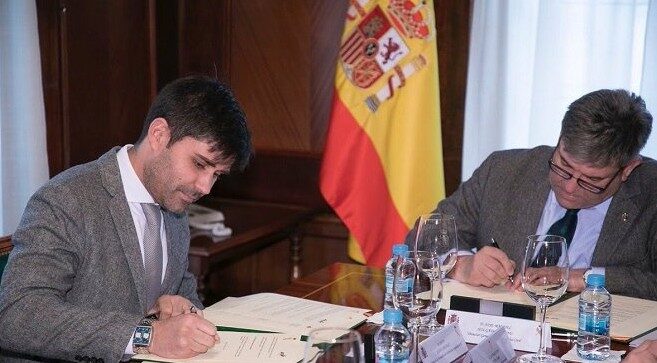 El director general de la Guardia Civil, José Manuel Holgado, y el presidente de la Asociación de Futbolistas Españoles (AFE), David Aganzo, firmaron un acuerdo para mejorar la seguridad en el fútbol y perseguir mejor actividades ilícitas como el dopaje, el amaño de partidos o las apuestas ilegales.