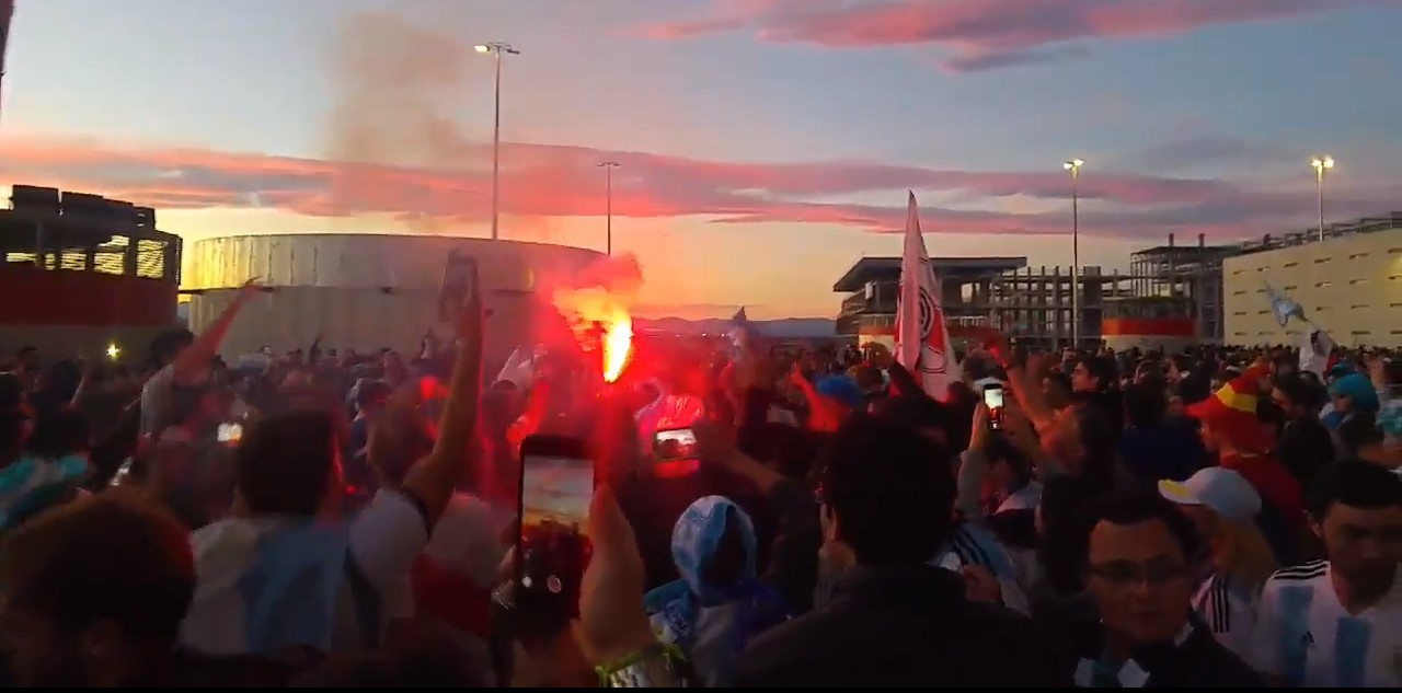 Los aficionados argentinos se lo pasaron en grande en la previa del encuentro. Bengalas, cánticos y colorido albiceleste en el Wanda Metropolitano.