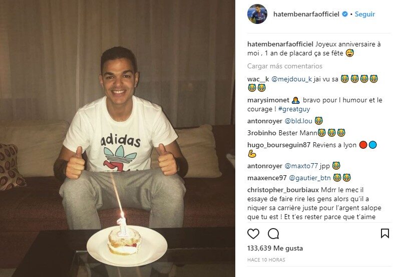 Pese a todo lo malo que ha ido acumulando en los últimos cursos, Ben Arfa fichó por el PSG en 2016 para unirse al proyecto de Unai Emery en la capital francesa. En su primer año jugó 32 partidos marcando cuatro goles, pero más allá de eso ha llegado la nada. No ha vuelto a jugar ni un sólo encuentro y, para celebrarlo, el galo subió a Instagram una foto con una tarta.