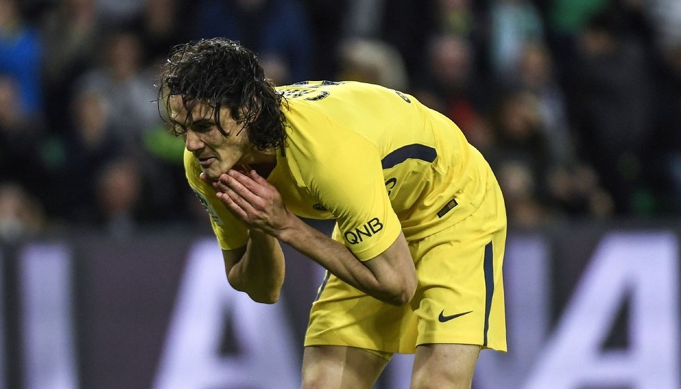 El delantero uruguayo falla un gol cantado a puerta vacía ante el Saint Etienne, con 1-0 en contra en el marcador. El PSG acabó empatando a uno, con diez, y aplaza el alirón en la Liga francesa.