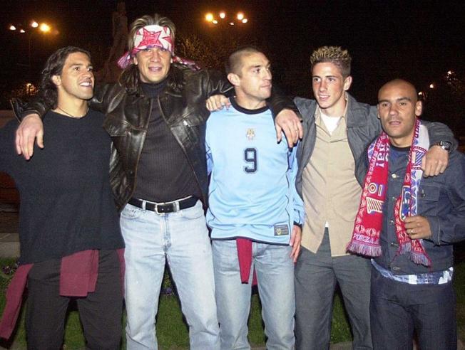 Tras una primera aparición estelar en la temporada 2000/2001, el Atlético ascendió a Primera al año siguiente de la mano de Luis Aragonés. Torres, adorado por el Sabio de Hortaleza, fue parte importante del ascenso y el día que se hizo oficial el regreso a Primera, Fernando, como un aficionado más, se fue a Neptuno con alguno de sus compañeros para celebrarlo. La imagen es curiosa ya que no fue una celebración habitual. El Atlético no logró ascender de forma directa en casa ante el Nástic, pero los resultados del día posterior le dieron el ascenso.