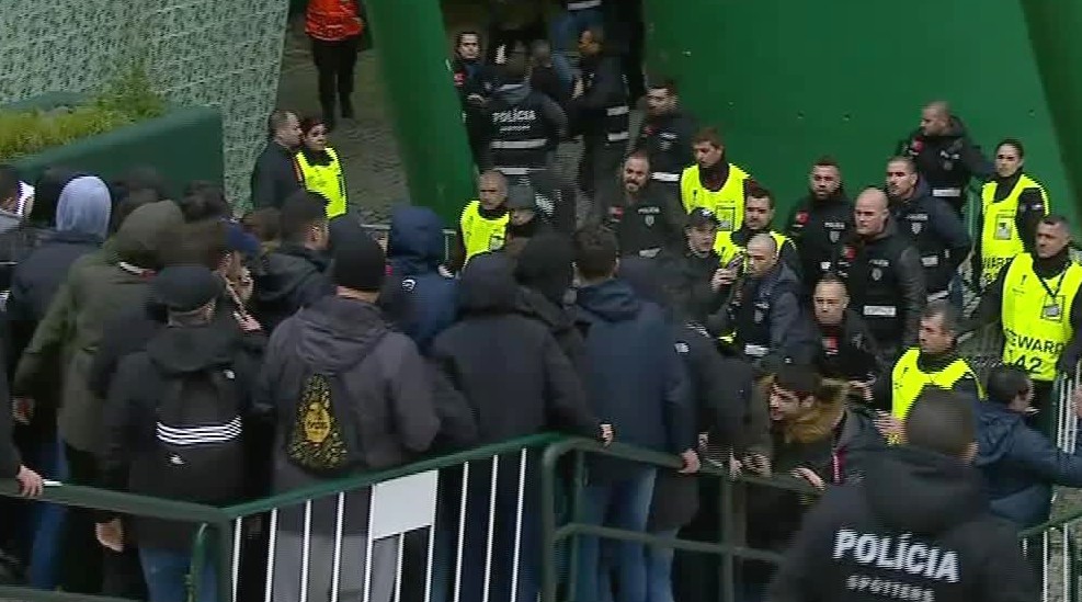 A diferencia de lo ocurrido en la eliminatoria de octavos de final de la segunda competición continental que midió a ambos clubes hace ocho años, esta vez no hubo incidentes entre las aficiones. En cambio, sí hubo mucha tensión entre los radicales del Atlético y efectivos de la Policía portuguesa.