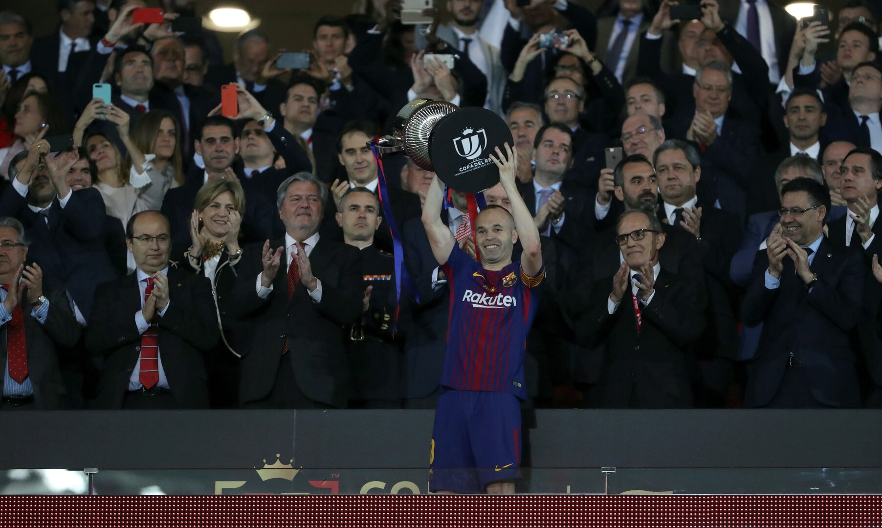 A partir del 4-0, la grada de Nervión se convirtió en la protagonista señalando al palco y animando a los suyos hasta el pitido final. Incluso en los segundos previos al penalti que Coutinho transformó en el 5-0, el himno del Arrebato fue lo único que se oyó en el Wanda Metropolitano. El brasileño marcó y el resto del choque se hizo eterno para todas las partes implicadas ya que a veces los pitidos finales se oyen antes del minuto 90. Iniesta levantó el título al cielo de Madrid antes de hacer lo propio con la Liga. Habrá doblete azulgrana.