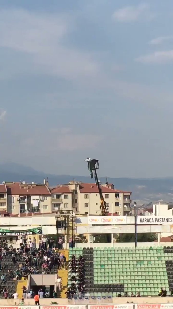 No podían darle una puñalada más grande a su corazón. Ama a su equipo y no puede estar de brazos cruzados cuando disputan los partidos como locales. ¿Qué hacer? La necesidad a veces agudiza el ingenio. Ni corto ni perezoso, el aficionado turco decide alquilar una grúa para no quedarse, durante todo un año, sin presenciar los partidos como local de su escuadra. Increíble pero cierto.