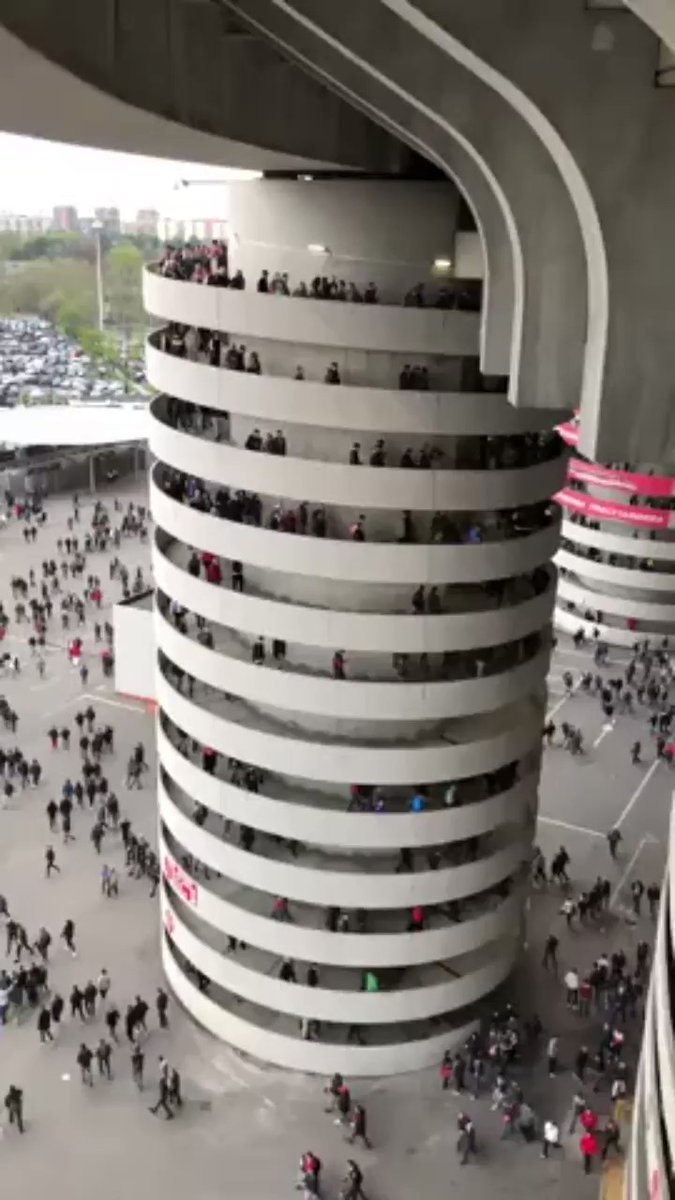 Las columnas del estadio del Inter y del Milan no se mueven, pero las personas que pasan por las mismas crean un efecto óptico de lo más curioso.