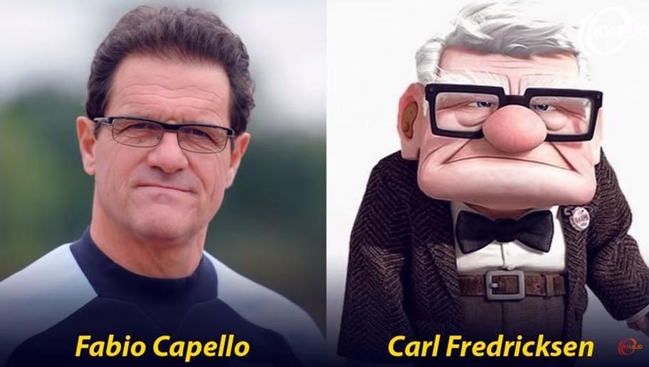 No se escapan de estos parecidos tampoco los entrenadores. Uno de los más graciosos lo encontramos en el italiano Fabio Capello y el entrañable personaje de Up Carl Fredicksen.