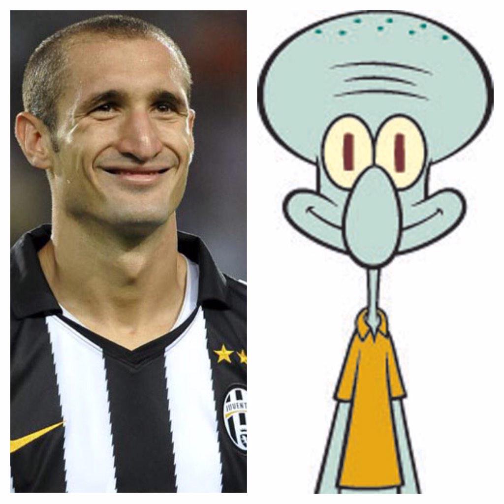 Se mire en la imagen que se mire, existe un gran parecido entre Chiellini y Calamardo. Esa nariz chata, la forma redondeada de la cabeza, y esa sonrisa entre burlona y gruñona pertenecen a ambos.