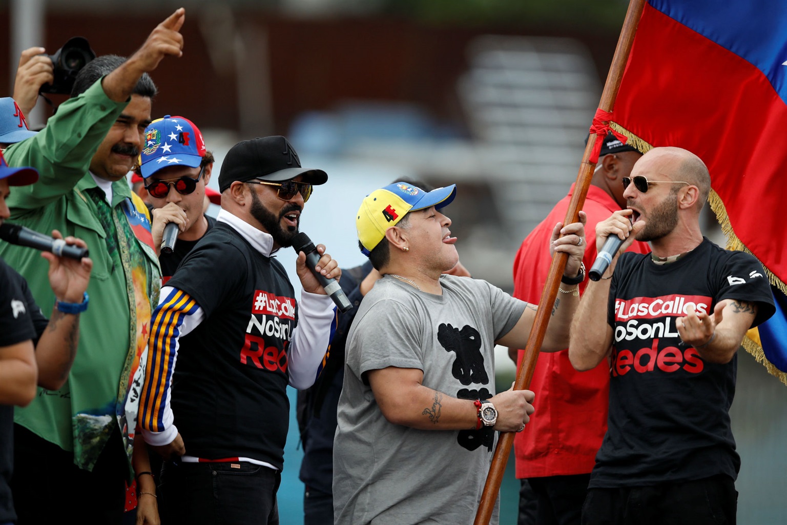 Maradona forma parte de séquito de artistas y personajes de cierto reconocimiento público que visitan Venezuela con frecuencia para expresar su respaldo al gobierno chavista, y que hicieron lo mismo en 2013 cuando el líder venezolano se presentó por primera vez a la Presidencia.
