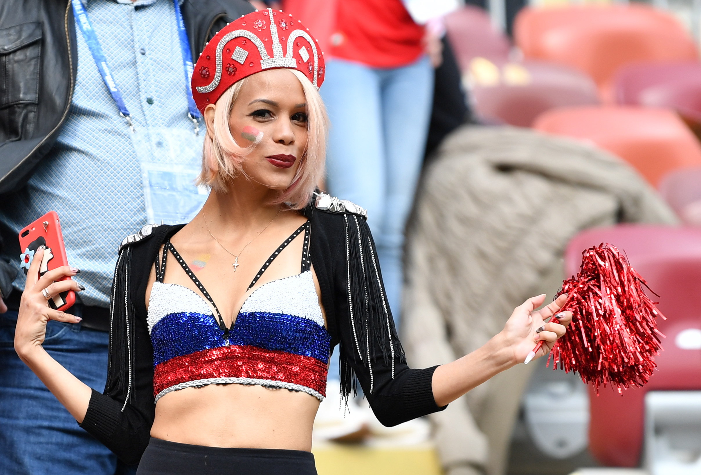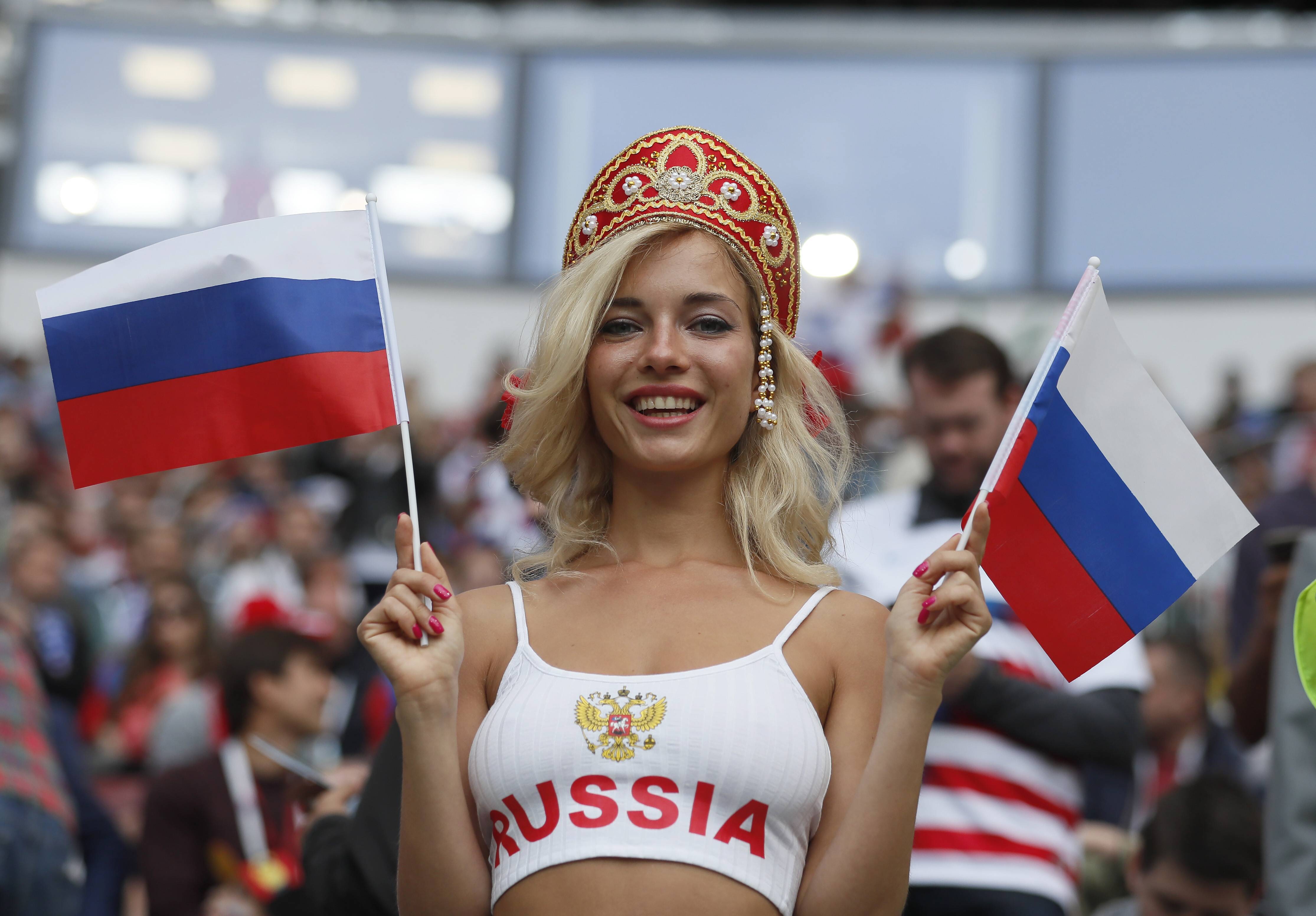 La afición llenó de buen ambiente el estadio, donde se pudieron ver algunas de las mujeres rusas más bellas.